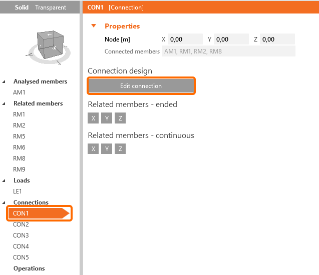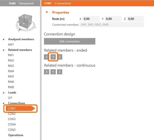 Chcete-li změnit okrajové podmínky, klikněte na přípoj CON1 a poté na Připojené prvky - ukončený Y a přidejte prvek k existujícímu přípoji.