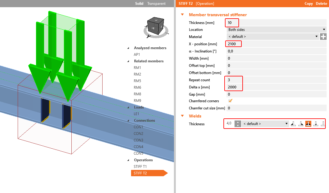 Přidejte výztuhy na místech, kde očekáváte lokální zatížení. Chceme-li tak učinit, klikneme pravým tlačítkem na Operace a vyberte Příčné výztuhy.