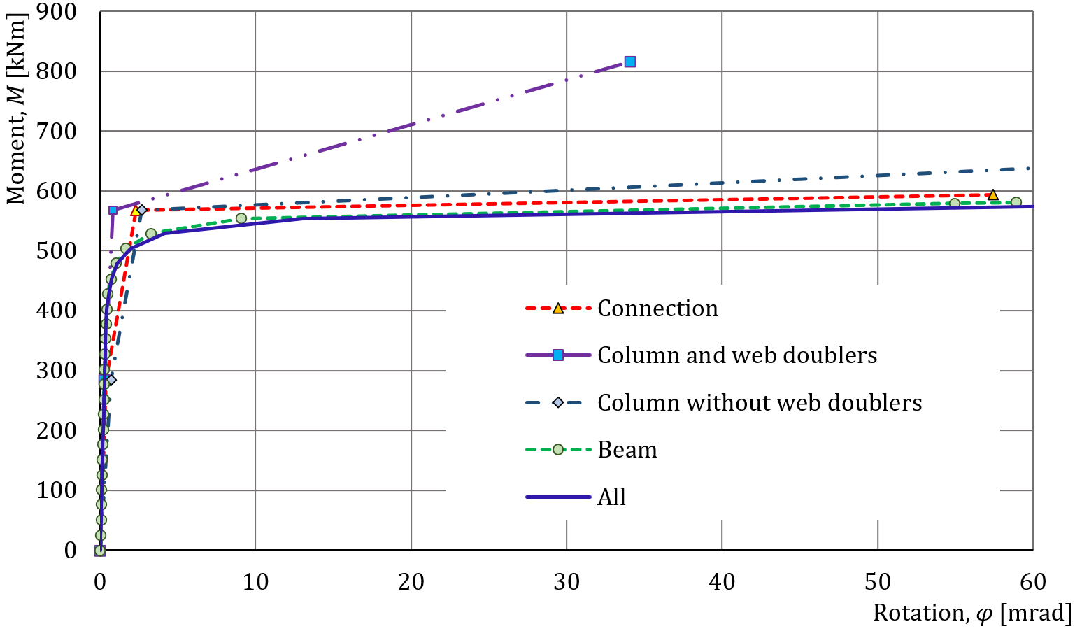 Fig. 12.3.3 Influence of macro-components on the behavior of the whole joint on M-φ diagram