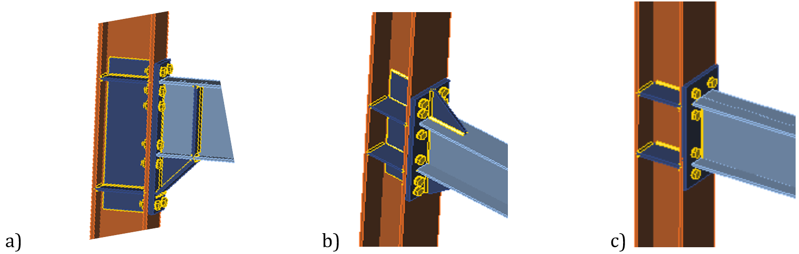 Fig 12.2.2 Joints used for validation and verification a) EH2- TS-35-M and EH2-TS-45-M, b) ES1-TS-F-M and ES3-TS-F-M, c) E1-TS-E-M and E2-TS-E-M