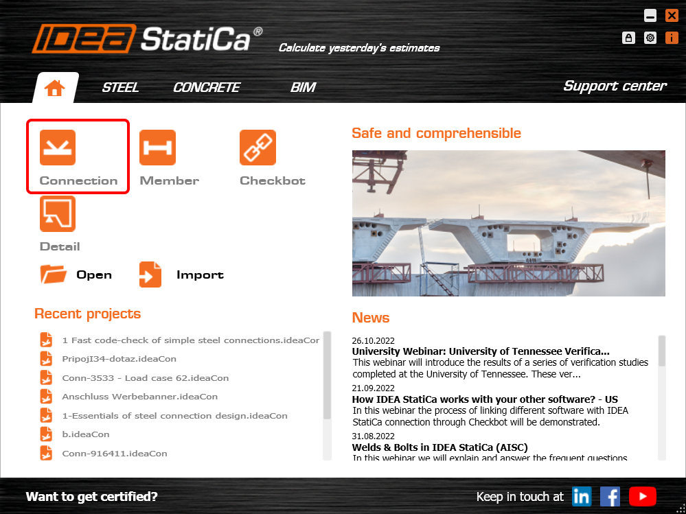 V hlavním okně aplikace IDEA StatiCa otevřete aplikaci Connection.