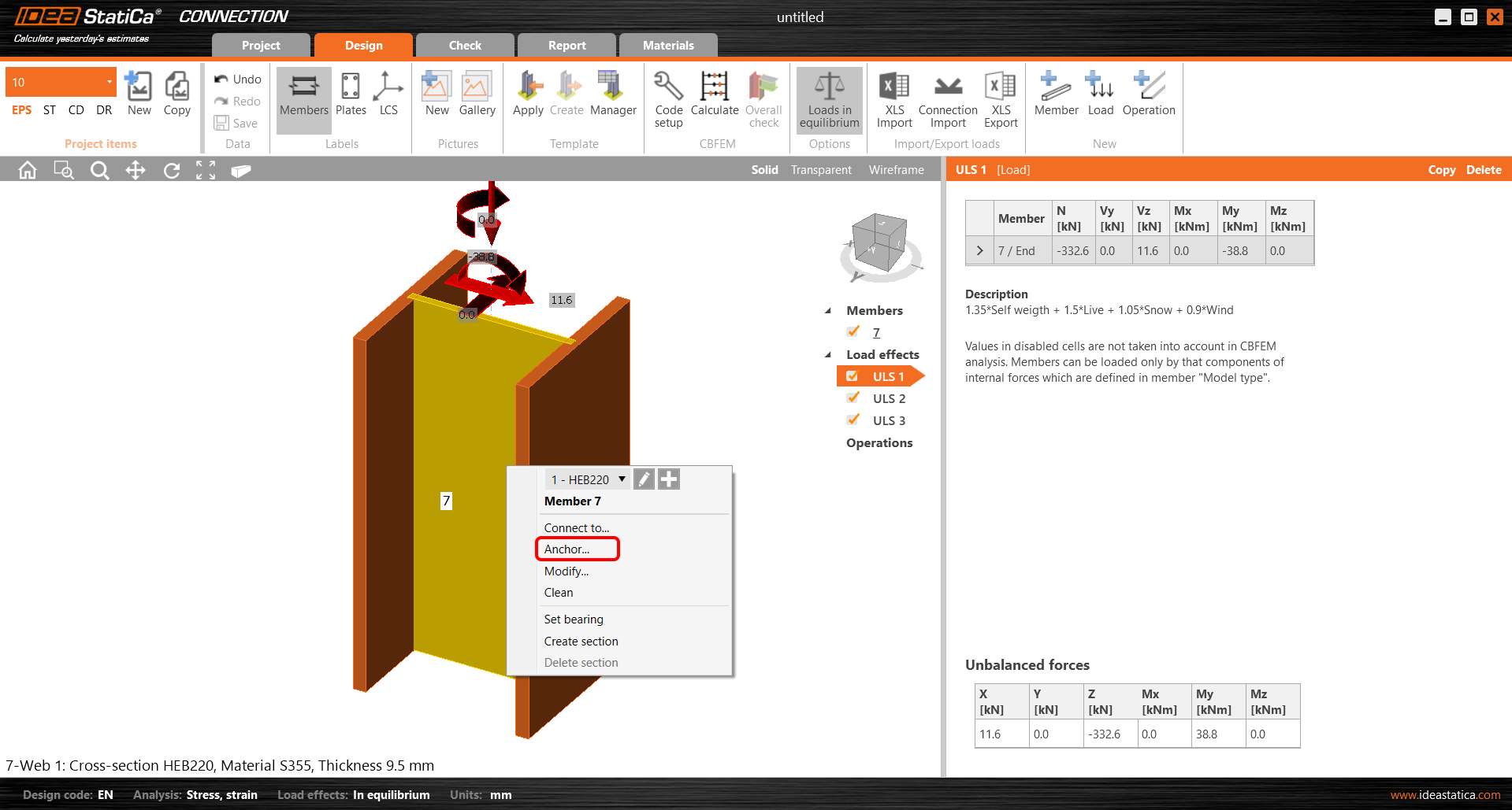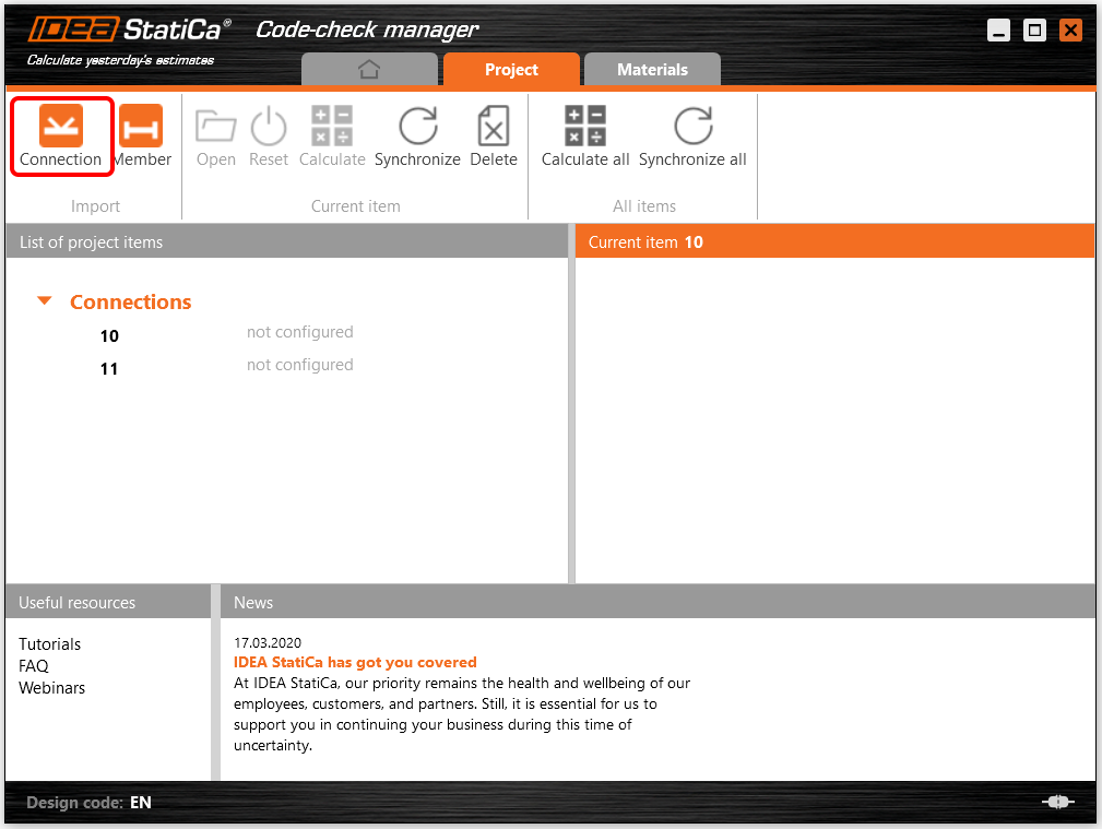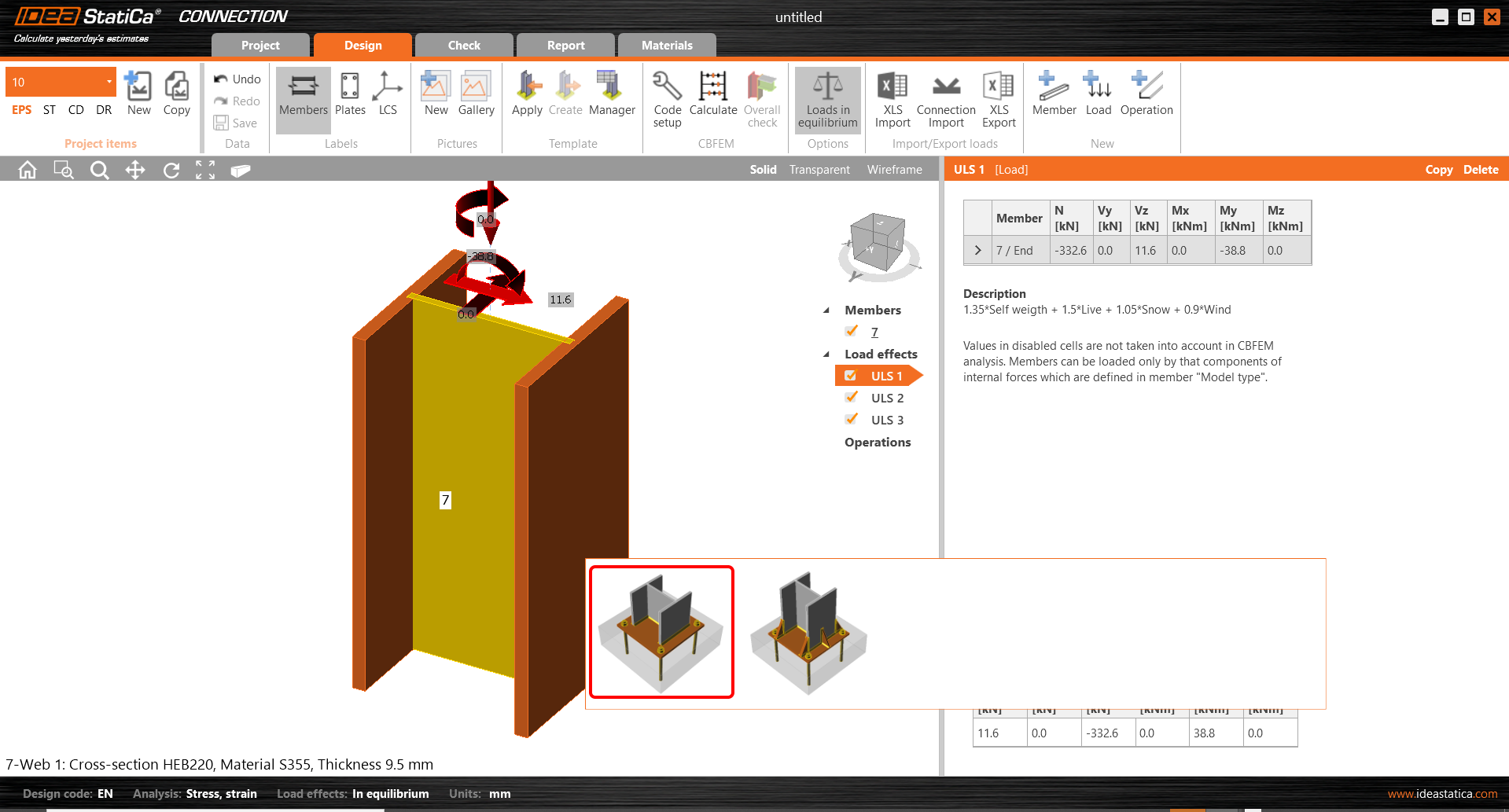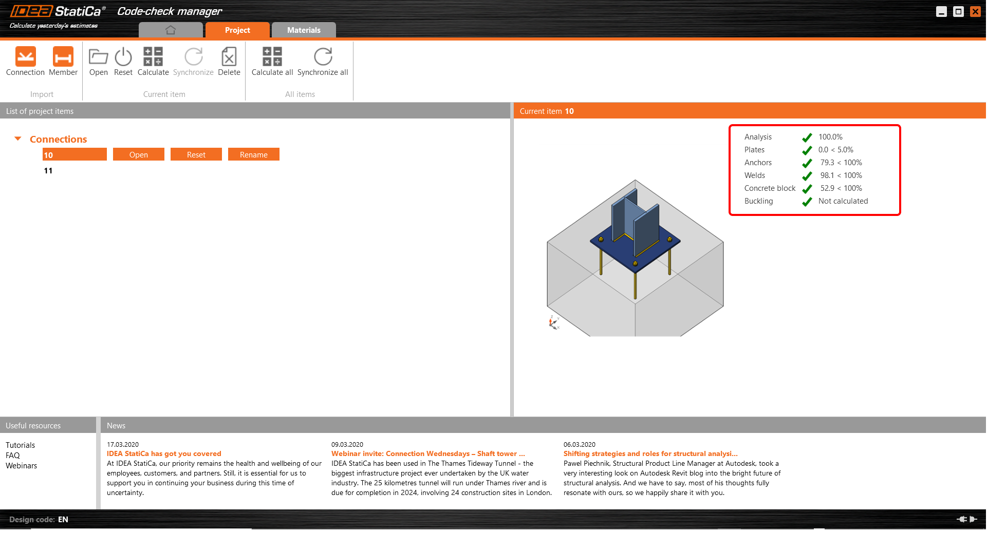Synchronize - IDEA StatiCa detects changes in already imported entities (changes in thickness, changes in cross-section, modification of properties of welds, bolts, etc.) and updates the project in IDEA StatiCa Connection.