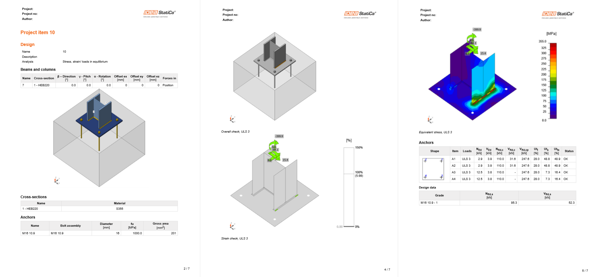 At last, go to the tab Report. IDEA StatiCa offers a fully customizable report to print out or save in an editable format.