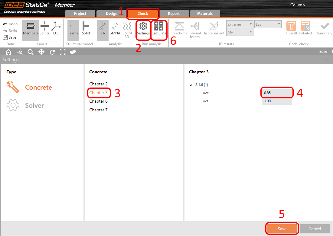 Model je hotový. Před spuštěním výpočtu běžte do Nastavení a v Kapitole 3 nastavte αcc na 0.85. Poté klikněte na Vypočítat. Provede se Lineární analýza.