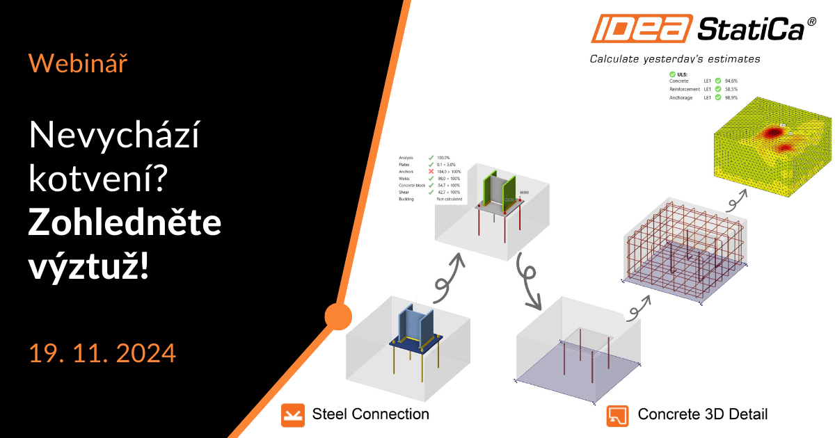 V rámci webináře vám na praktické ukázce představíme celý pracovní postup posouzení kotvení a vysvětlíme speficika modelování.