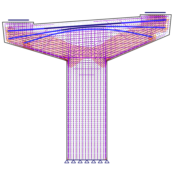 CSFM)* Das Compatible Stress Field Model (CSFM) ist eine neue Methode zur Bemessung von Betonstrukturen, besonders geeignet für Diskontinuitätsbereiche wie Konsolen, gedrungene Balken, Wände mit Öffnungen und Rahmenecken. Es ermöglicht eine effiziente Überprüfung der Bemessungsnormen, einschließlich der Gebrauchstauglichkeit, auch bei komplexer Geometrie. Die Methode basiert auf der Finite-Elemente-Analyse und verwendet Standardmaterialparameter aus dem Betontragwerksentwurf nach DIN EN 1992-1-1.