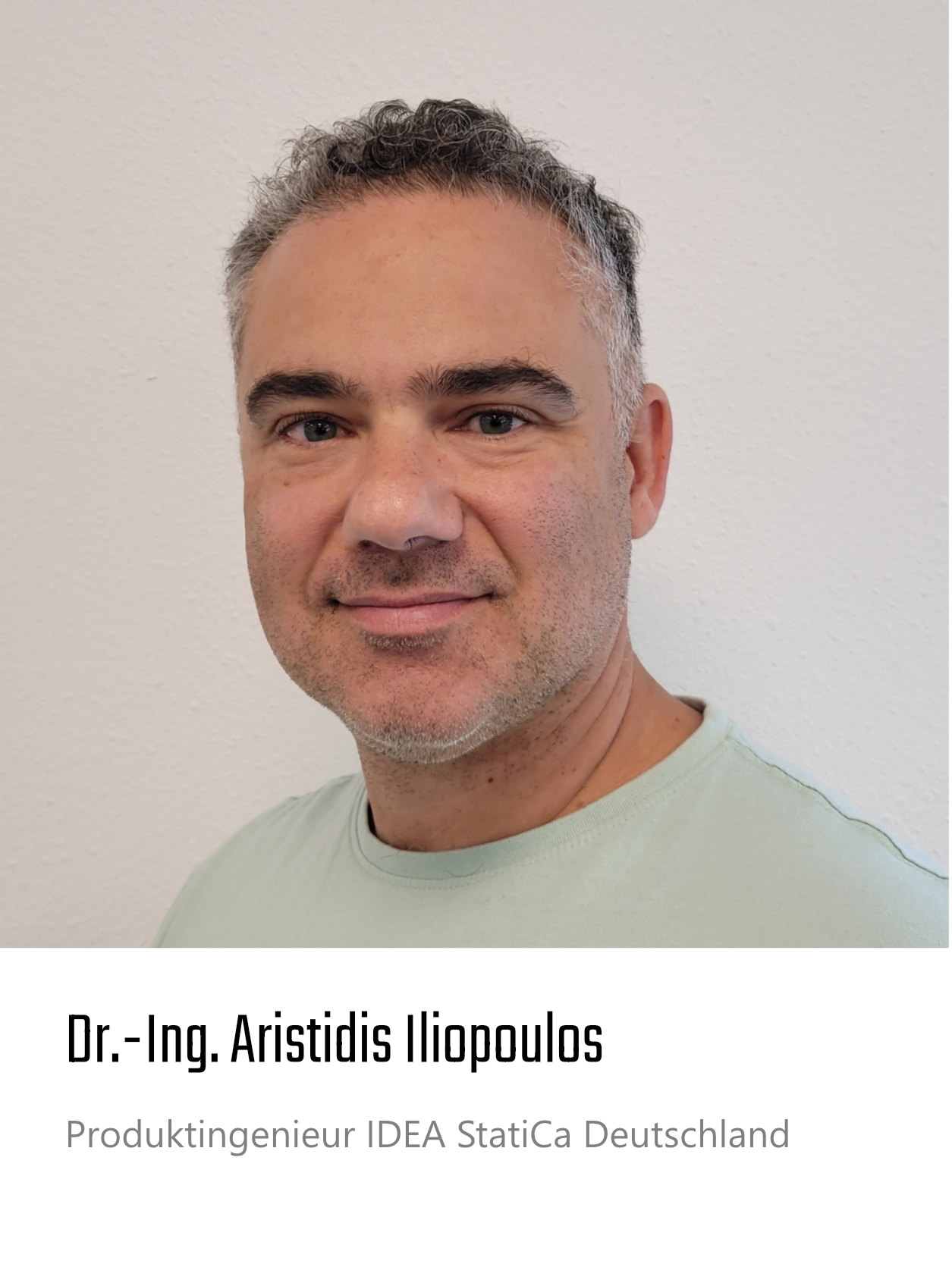 | 14:30 - 15:10 Uhr | Kundenbeispiele live: IDEA StatiCa im Alltagseinsatz Dr.-Ing. Aristidis Iliopoulos, Produktingenieur IDEA StatiCa Anhand von Kundenprojekten werden praktische Anwendungsfälle von 2D und 3D CSFM)* vorgestellt. Live-Demonstrationen zeigen, wie diese Modelle in verschiedenen Projekten erfolgreich genutzt wurden und welche Vorteile sie bieten. |