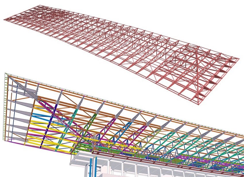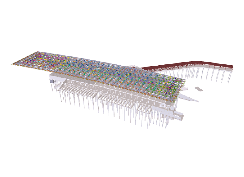 Das riesige 7200 m² große freitragende Dachdesign ist der Höhepunkt sowohl struktureller Kunstfertigkeit als auch architektonischer Vision und ist ein Projekt, an dem Kiernan Steel sehr stolz ist. Damit ist diese Tribüne das größte freitragende Dach ihrer Art in Irland.Aufgrund der Komplexität des Projekts wurden Tekla & IDEA Statica ausgiebig (und oft zusammen) verwendet, um Anschlüsse für das 1100-Tonnen-Stahldach zu konstruieren, die nicht nur ihre strukturelle Funktion erfüllen, sondern auch gefertigt werden konnten, bauseits und dennoch innerhalb des schlanken Profils der Dachkonstruktion motiert werden konnten.