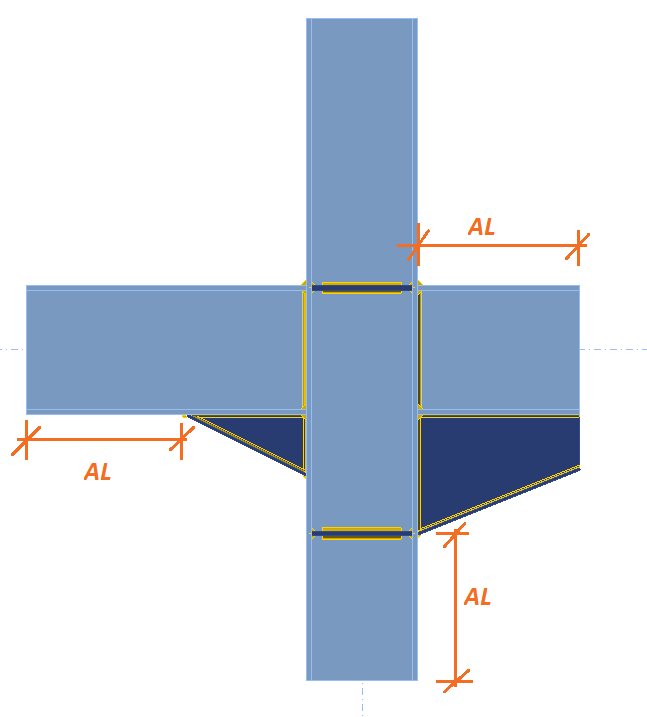 Im Beispiel dieses Querschnitts in der folgenden Abbildung beträgt die automatische Länge standardmäßig AL = 1,25 × b = 1,25 × 200 = 250 mm.