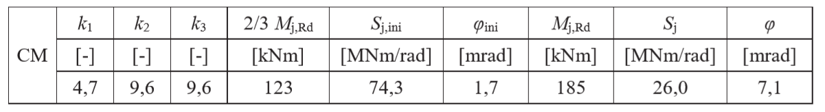 | Bending moment Mj,Ed [kNm] | Secant stiffness Sj [MNm/rad] | Rotation \(\phi\) [mrad] |