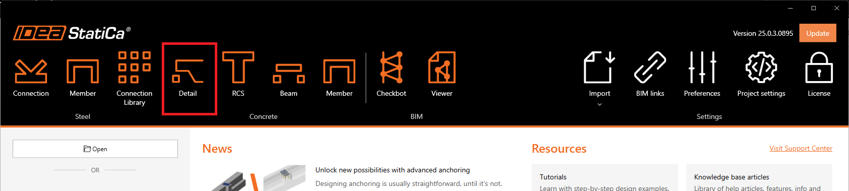 Starten Sie IDEA StatiCa Detail, um diskontinuierliche Bereiche aus Stahlbeton normgerecht zu modellieren und zu bemessen (laden Sie die neueste Version herunter). Dieses Tutorial zeigt Ihnen, wie Sie eine Stütze mit auskragender Konsole als D-Feld modellieren und bemessen – inklusive Nachweisen und Berichtserstellung.