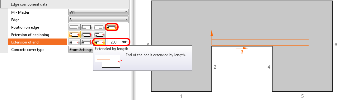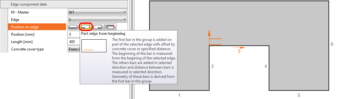 Beim Definieren der Stabgruppe am Umriss oder Öffnungsrand gibt es vier Möglichkeiten, die Position festzulegen: