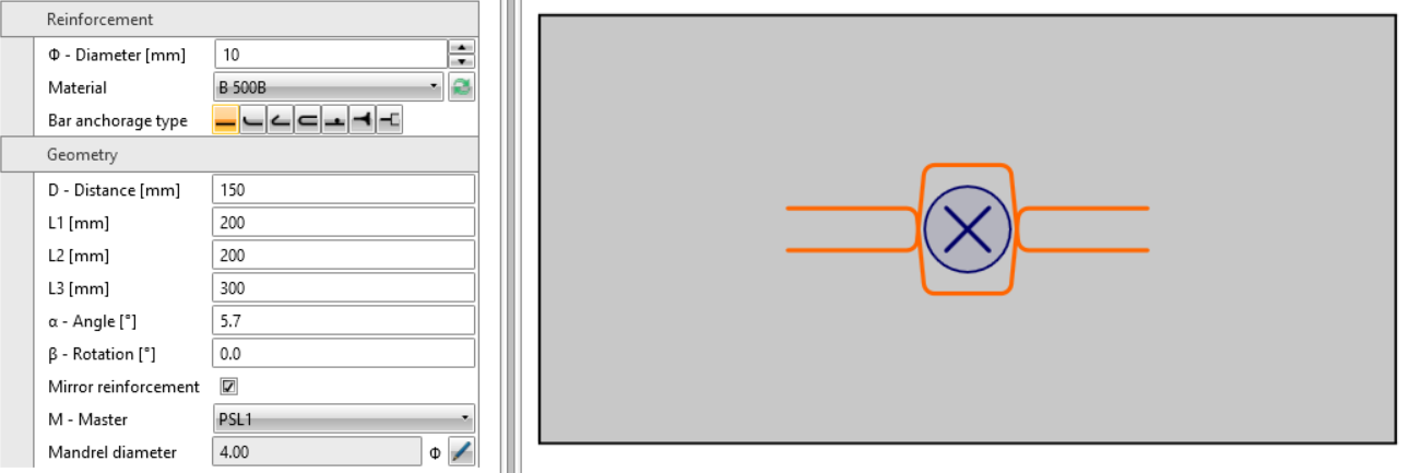 \[ \textsf{\textit{\footnotesize{Die Bewehrung wird durch zwei Punkte definiert}}}\]