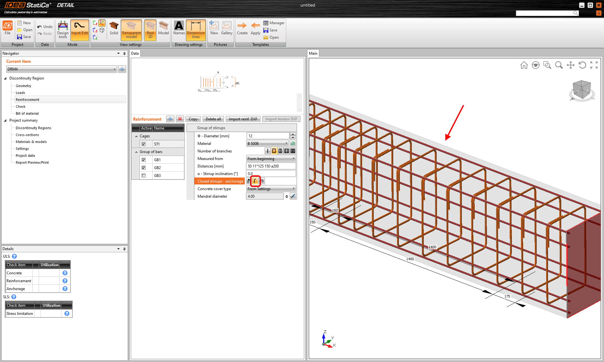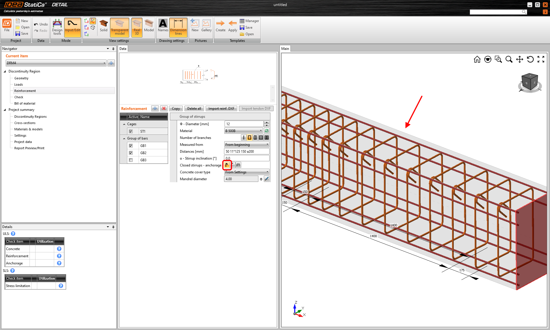 Die Bügel können nur in Strukturen mit Balkenelementen modelliert werden. Wie bei jeder anderen Bewehrung auch, müssen Sie die notwendigen Parameter einstellen.