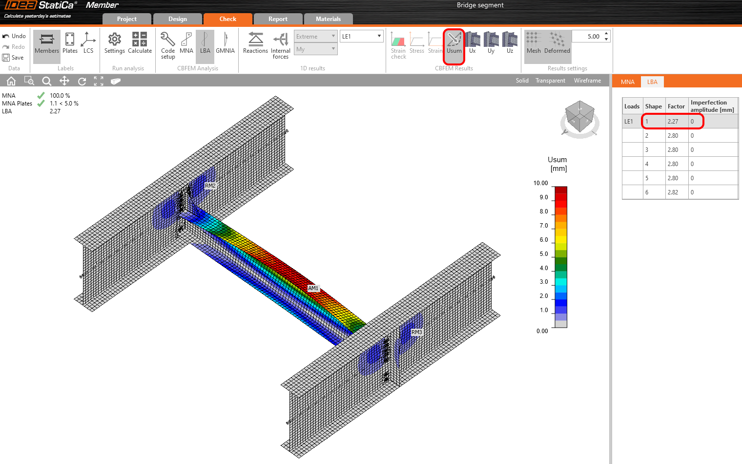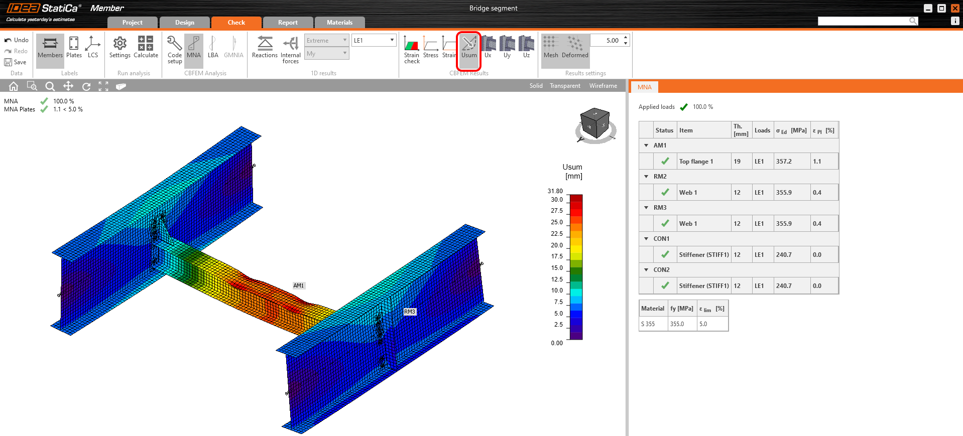 The MNA results were delivered. You will check the results, turn on the Usum deformation view and check out the results.