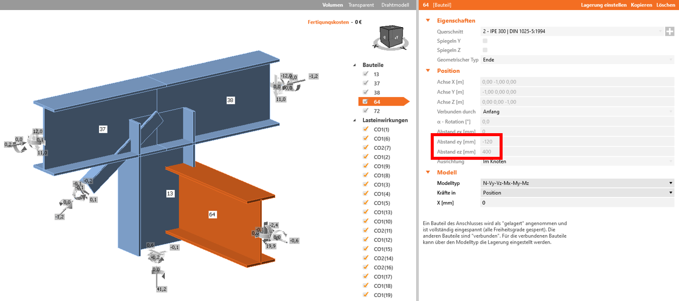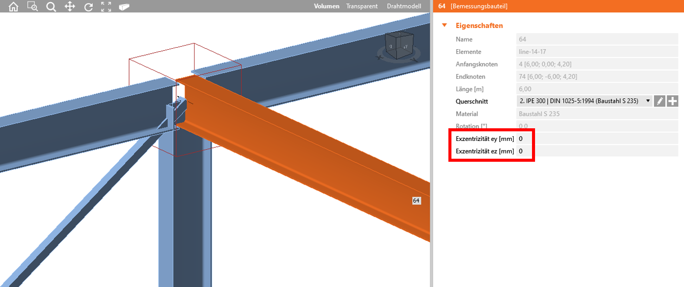 Wenn Sie die Verbindung in IDEA Connection öffnen, können Sie die Exzentrizität kontrollieren. Eine Änderung in IDEA Connection ist nicht möglich, schließen Sie dazu das Modell und ändern die Exentrizität im Checkbot