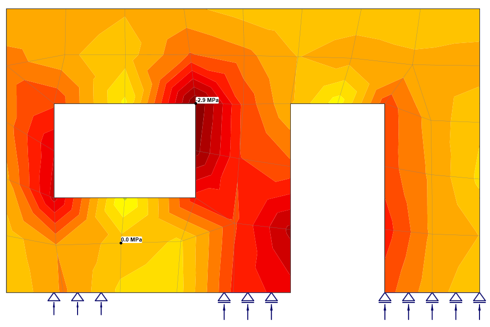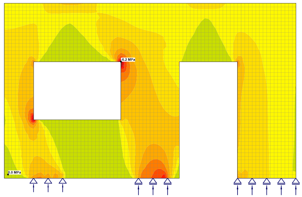 Please note that the multiplier influences the mesh of the reinforcement as well as the mesh of the concrete. The previous figures are from the same model. The dependency between the multiplier and results can be seen in the figures.
