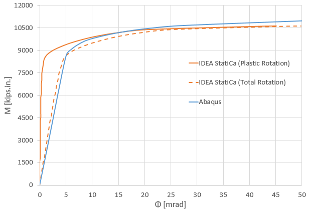 Figure 2.21: Moment-rotation comparison between IDEA StatiCa and ABAQUS