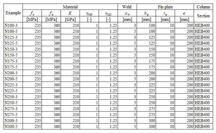 \[ \textsf{\textit{\footnotesize{Fig. 4.3.2 Parametric study of fin plate joint loaded by normal force}}}\]