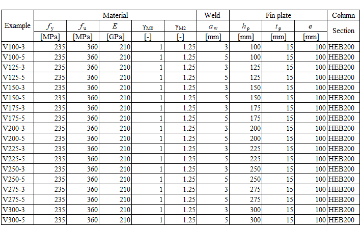 In this chapter, component-based finite element method (CBFEM) of a fillet weld in a fin plate joint is verified with component method (CM). A fin plate is welded to open section column HEB. The height of the fin plate is changed from 150 to 300 mm. The plate/weld is loaded by normal and shear force and bending moment.