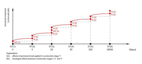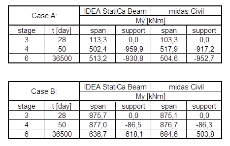 During the comparison, we focused on the bending moments at the support and midspan in particular construction stage for both cases.