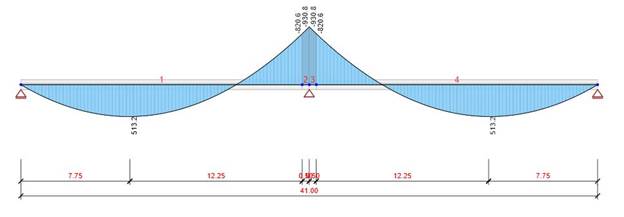 One might suggest why is the rapid increment of bending moment at the intermediate support when connecting together two precast beams by cast-in-situ slab and diaphragms. The expecting behavior was that the bending moment occurs at the intermediate support in some time due to creep of the concrete but no immediately after compositing of the precast beams and cast-in-situ parts. Let us look at this problem in more detail and consider the various layout of temporary supports and their influence on the distribution of internal forces.