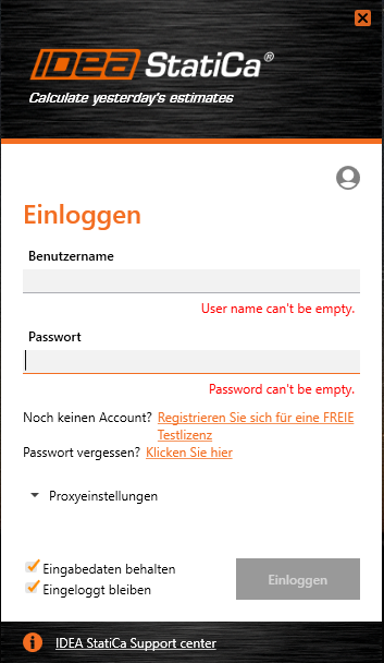 - LIZENZNUTZUNG BEIM PROGRAMMSTART durch Einloggen mit Nutzername und Passwort