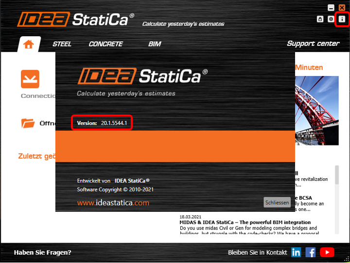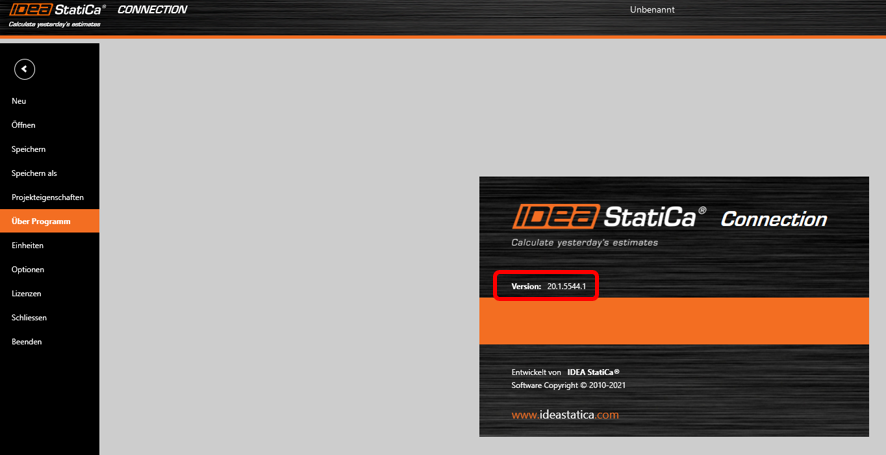 - Im Programm (während der Modellierung): Tab Projekt > Über Programm