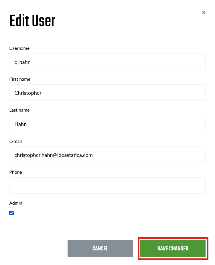 > Mehrere Admins im gleichen Account sind möglich - Änderungen durch den Button „Save Changes“ abschließen