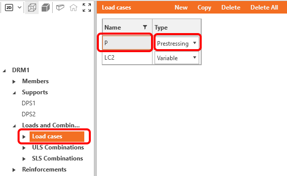 Go to the Loads in the Navigator. Rename the Load case LC1 to P and change its Type to Prestressing.