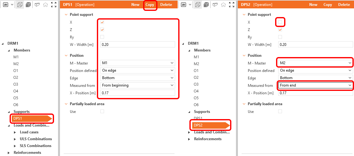 Set the Distributed point supports DPS1 according to the figure below. Copy the support and adjust the new support DPS2.