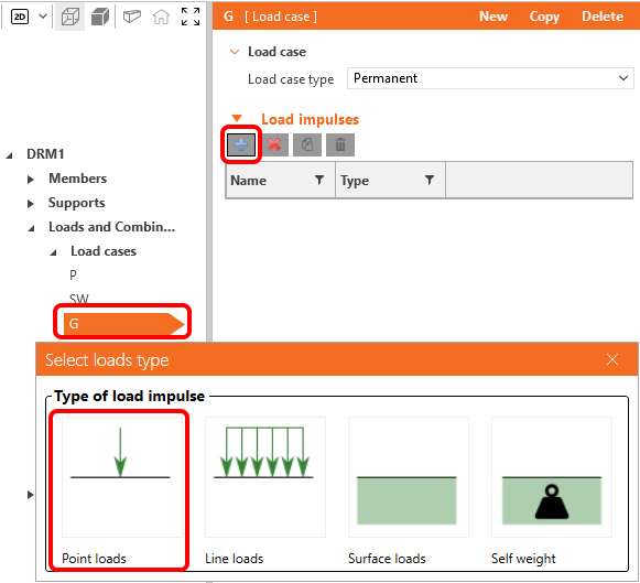 Switch to the Load impulses. Delete the Line load LL1 from load case P. This load case will stay empty.
