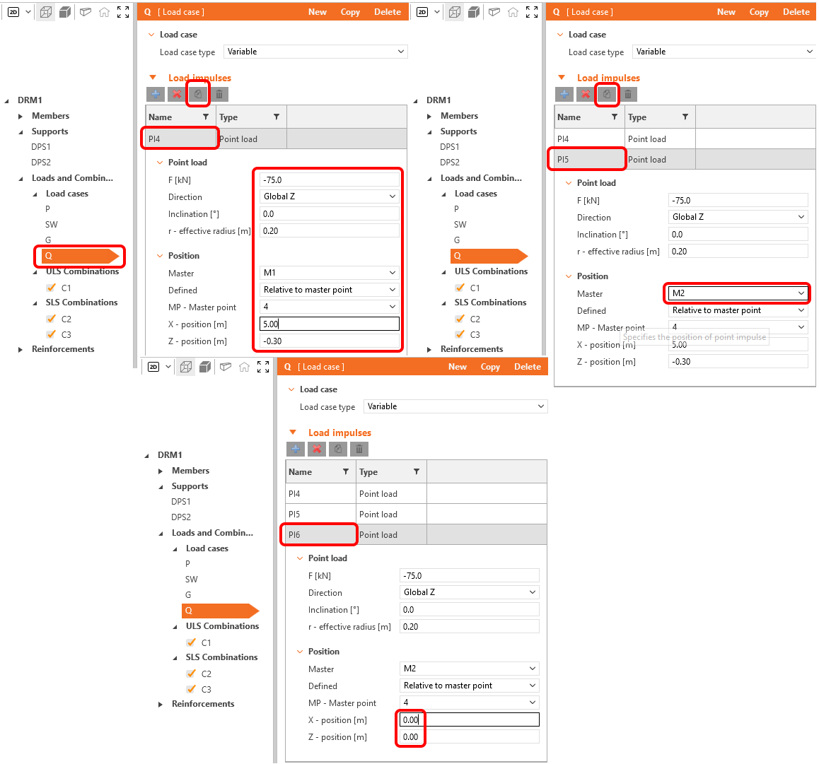 Similar point loads need to be created for load case Q. The only difference is the value of the load, which will be -75 kN.