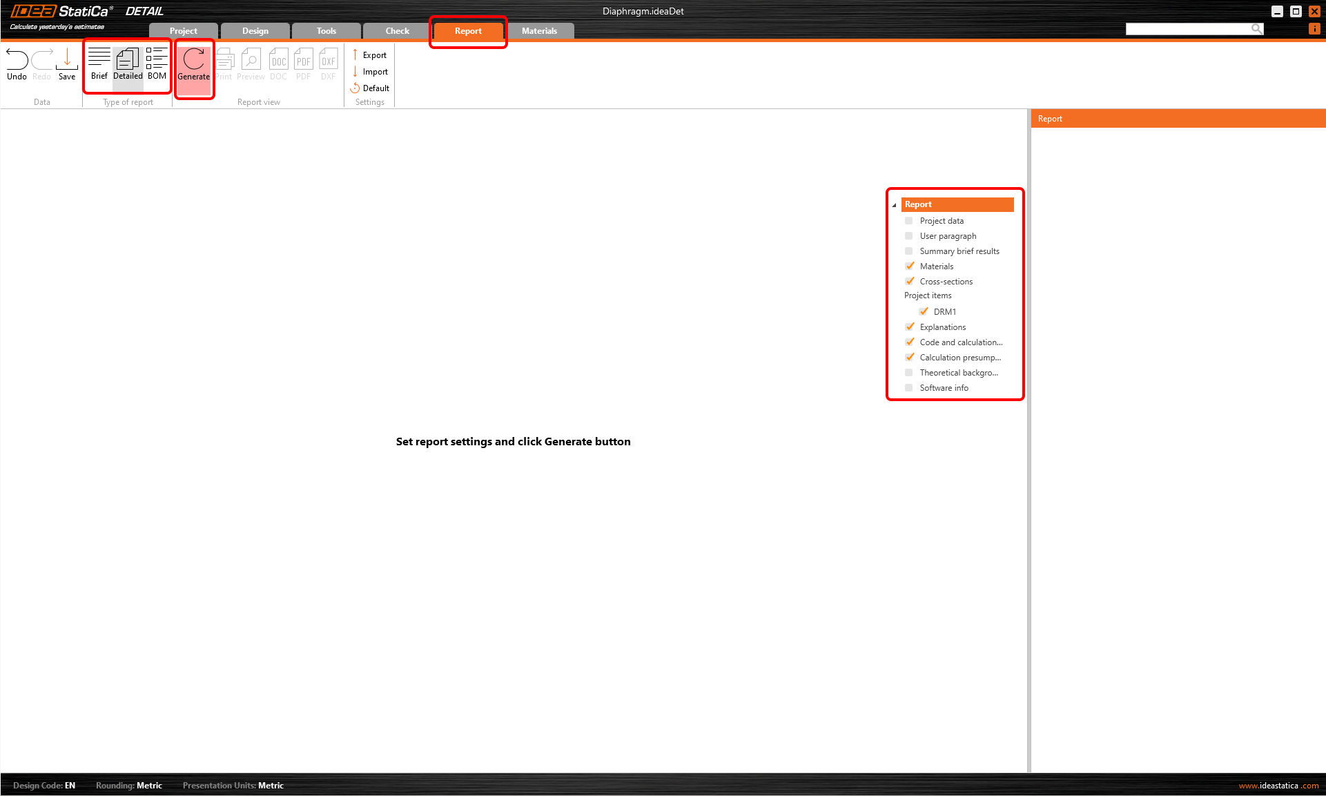 Create a new project by clicking New. The Wizard window is opened, and you can start with a selection of proper concrete grade and cover. Then continue with Diaphragm in Templates and then choose the template Box girder diaphragm.