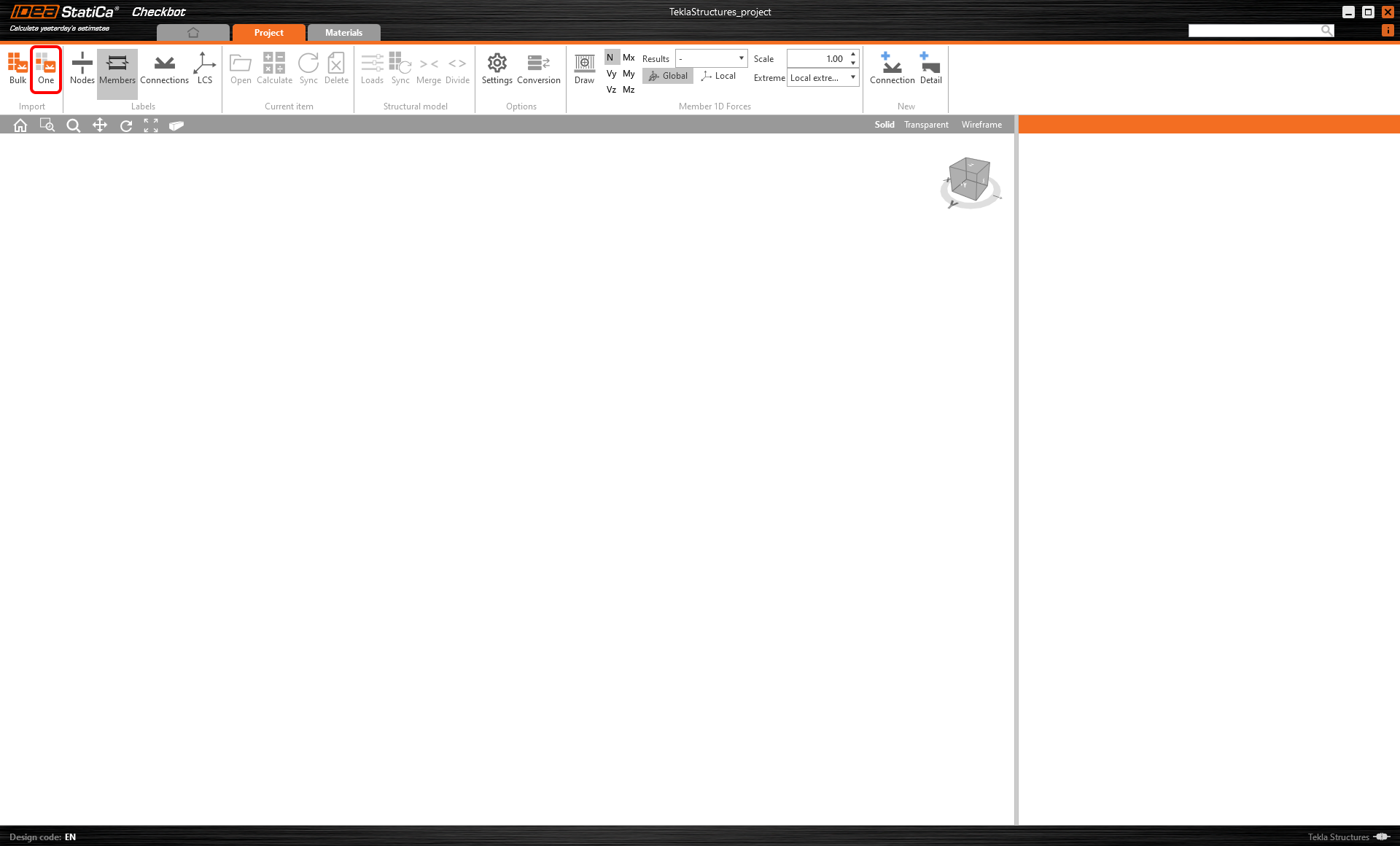 Klicken Sie auf Öffnen. Das Anwendungsfenster IDEA StatiCa Connection wird automatisch mit der importierten Verbindung angezeigt.
