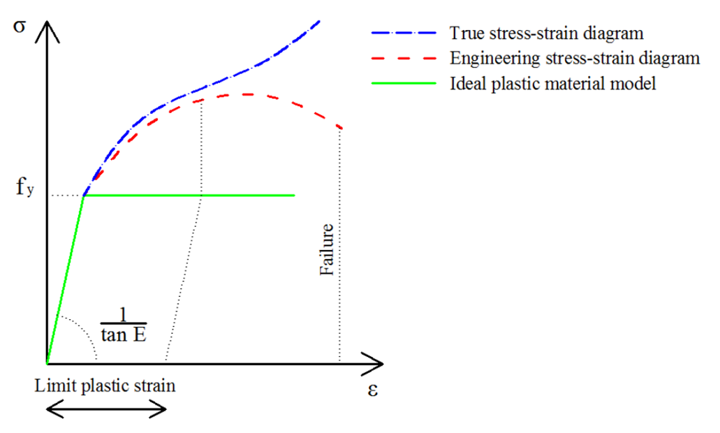 Auf den Platten werden die resultierende Vergleichsspannung (HMH, von Mieses) und die plastische Dehnung berechnet. Da das perfekt elastoplastische Materialmodell verwendet wird, überprüft der Spannungsnachweis die Platte nicht (die Spannung überschreitet niemals Fy). Es wird ein Nachweis einer äquivalenten plastischen Verformung durchgeführt. Der Grenzwert von 5% wird im Eurocode (EN1993-1-5 Anhang C, Absatz C8, Anmerkung 1) empfohlen; dieser Wert kann vom Anwender in den Projekteinstellungen geändert werden. Dieser Grenzwert der äquivalenten plastischen Verformung wird in Formeln in allen anderen Normen berücksichtigt, obwohl er dort nicht ausdrücklich erwähnt wird.