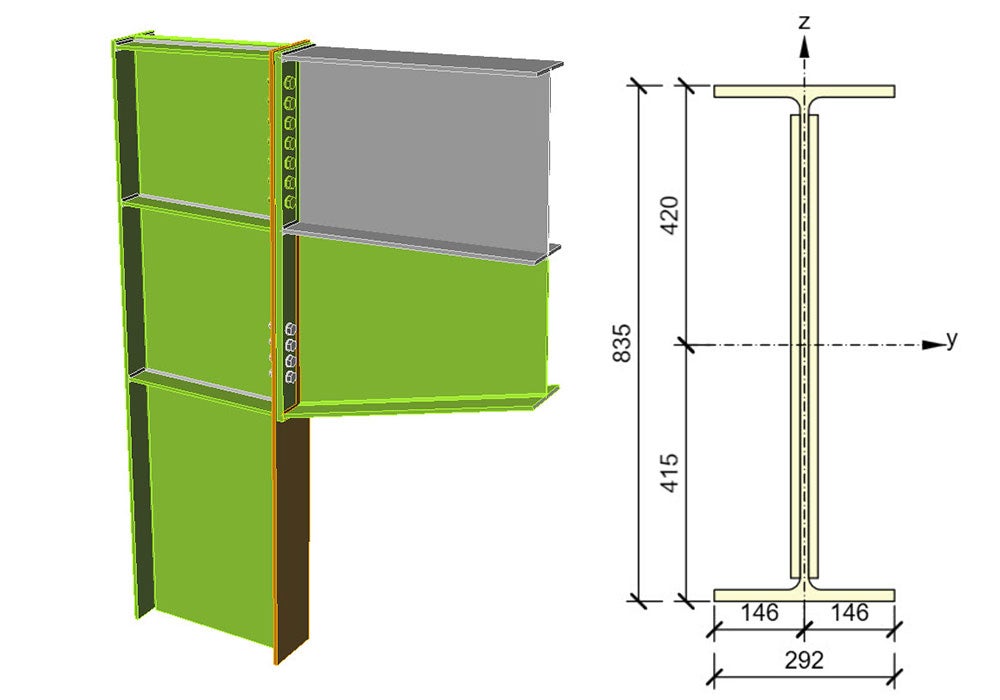 Während des Webinars präsentieren wir den Workflow des Normnachweises eines Anschlusses zwischen einer Turmstütze und drei Trägern auf einer typischen Aussteifungsebene. Die Träger-zu-Stütze-Verbindungen sind einfache Schraubverbindungen unter Verwendung von Rippenblechen. Eine ebene und zwei Vertikalstreben sind ebenfalls im Anschluss enthalten. Dies sind EA-Profile, die mit Steifenblechen verschraubt sind, die direkt auf die beteiligten Hauptträger geschweißt werden. Das Beispiel veranschaulicht die Fähigkeit der Software, die exakte Geometrie zu modellieren, die der Stahlwerksplaner mit den verschiedenen verfügbaren Operationstypen vorsah.