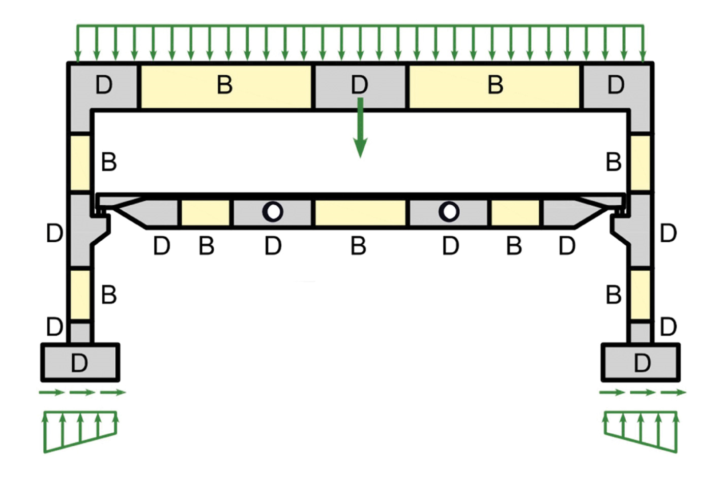 Because we are structural engineers, very practical people with trust in facts and a taste for rules, we will start with a little bit of theory. Every reinforced or prestressed concrete structure can and should be divided into B and D-regions during the designing process.