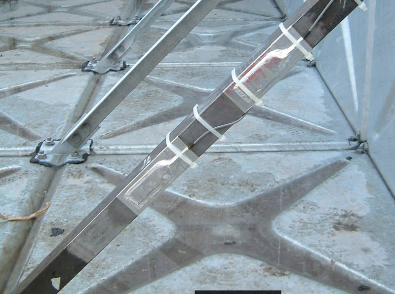 The picture below shows recent full-scale testing of a tank where a stay is connected to strain gauges which continually monitor the load on tank stays during water filling and long static water tests.