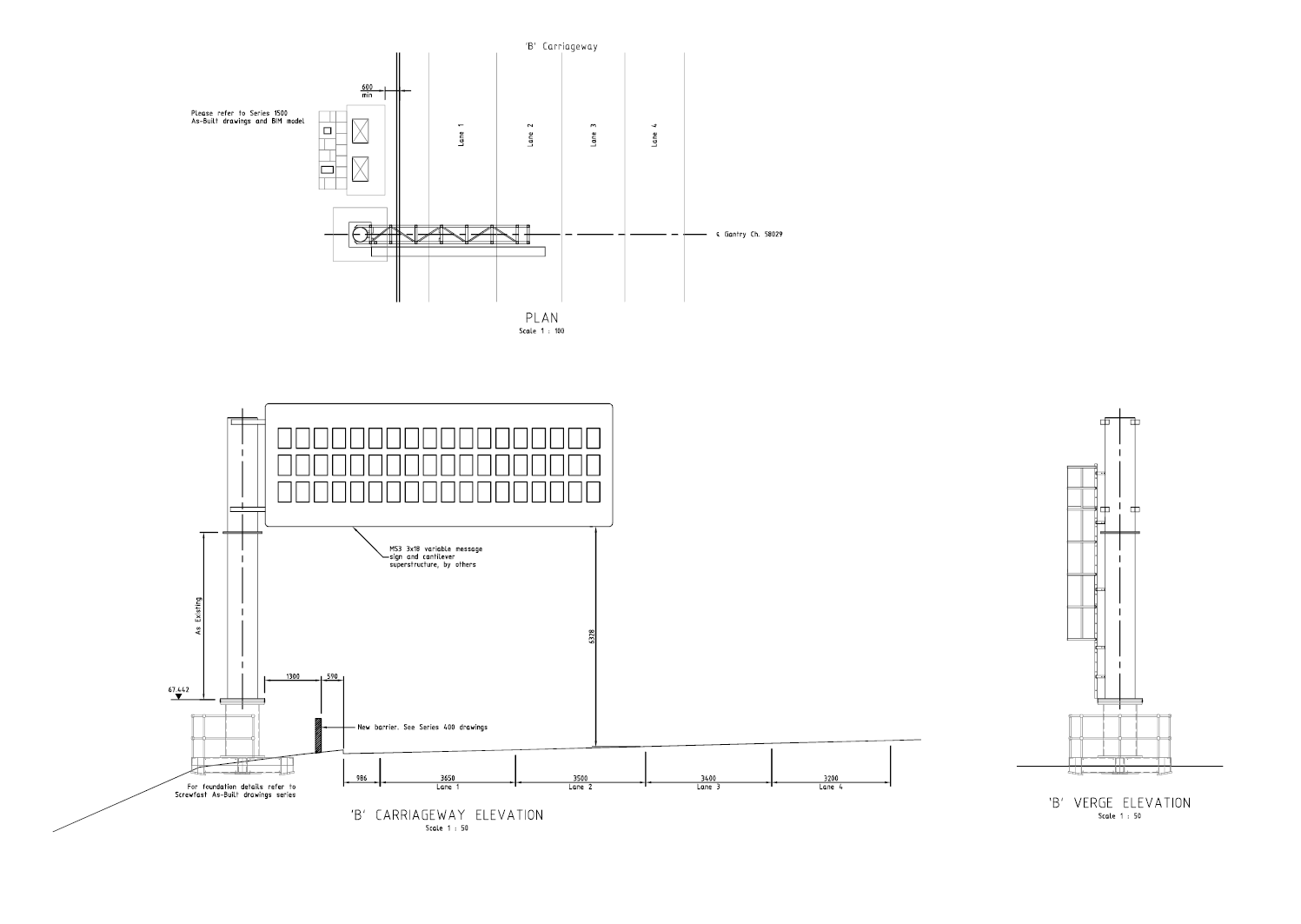 The M1 motorway signage upgrade demanded a cantilever ring structure supported by a steel grillage substructure, secured with screw piles on a slope embankment. Positioned over one of England’s busiest motorways, this independent verification project required meticulous calculation and modeling to ensure the structure met stringent Eurocode standards, particularly for fatigue under high traffic load conditions.