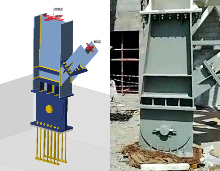 Moreover, the project required verifying a node where 13 members converged into a single joint at irregular angles. Apart from many complex connections, solving 150+ similar connections and transferring data among teams would take a lot of time if only standard tools were used.