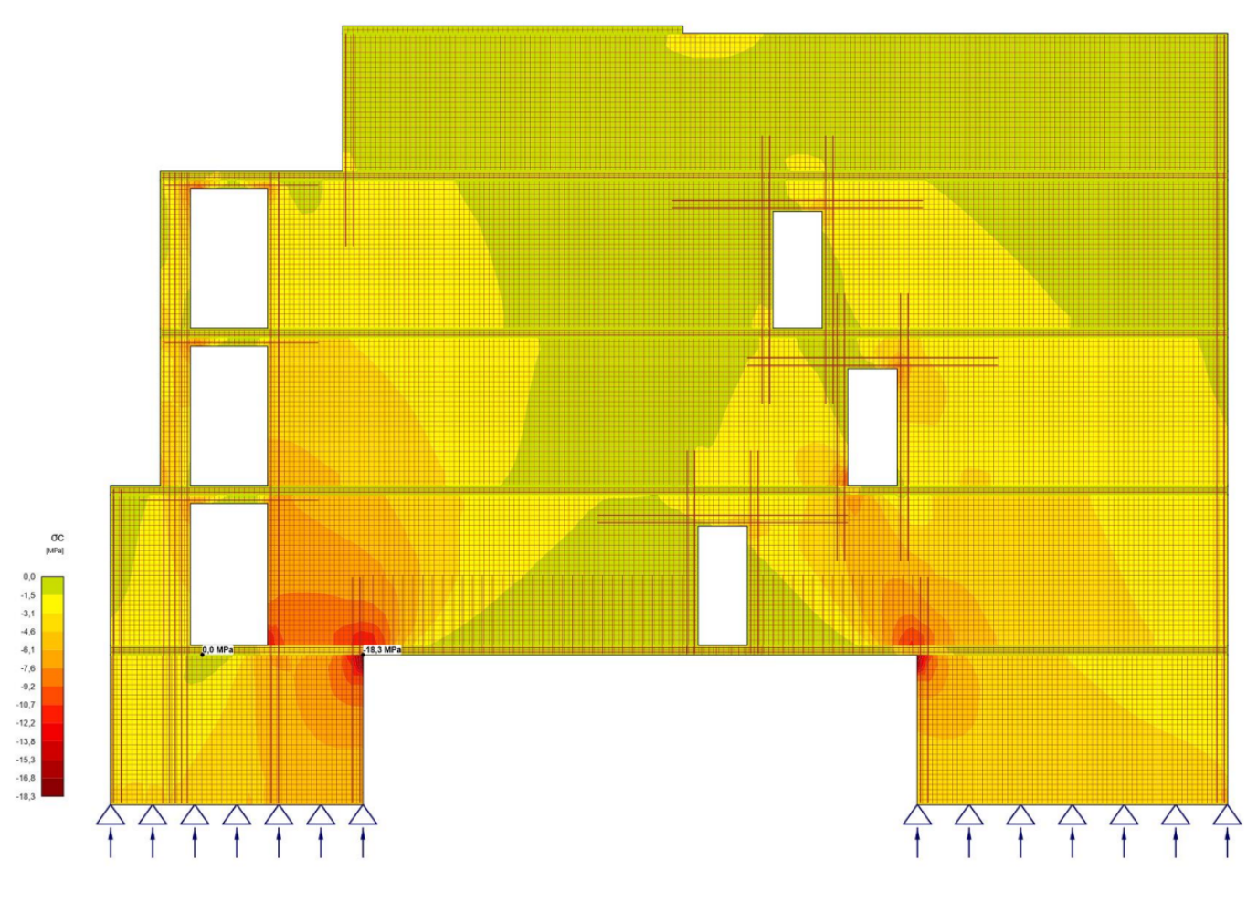 Applying beam theory or linear elastic FE would have misrepresented these conditions by assuming plane sections remain plane and concrete stays uncracked. Such simplifications risk either unconservative results, overlooking crack widths and local strain concentrations, or excessively conservative detailing with unnecessary columns or deep beams. What was needed was an approach that could represent cracking and compression softening, tension stiffening, creep effects, and bond-slip between steel and concrete.