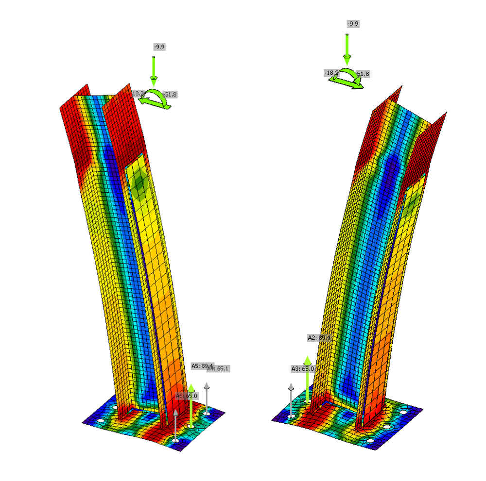 The nonlinear 3D analysis, incorporating realistic material behavior, no tensile strength in concrete, and zero internal friction, enabled the anchoring system to pass all relevant code checks. The solution not only satisfied Eurocode requirements but also accommodated the heightened wind loads of the national road standard. The result was a robust, safe, and realistic anchoring design that was also validated by the main design office, CÉH+, which later adopted and supported the approach.