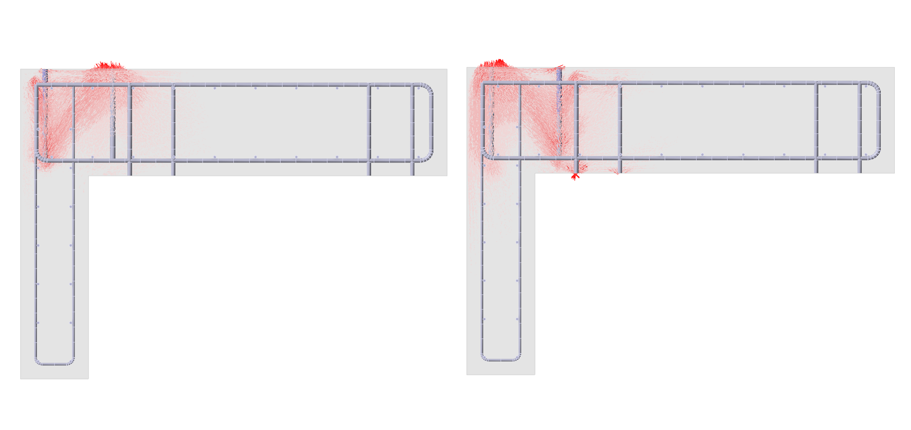 \[ \textsf{\textit{\footnotesize{Stress flow in concrete in IDEA StatiCa Detail}}}\]