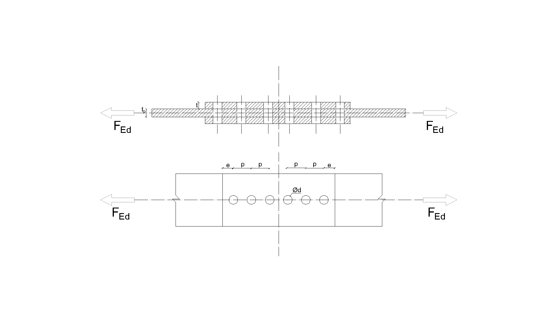 \[ \textsf{\textit{\footnotesize{Fig. 5.2.6 Benchmark example of the bolted splices in shear}}}\]