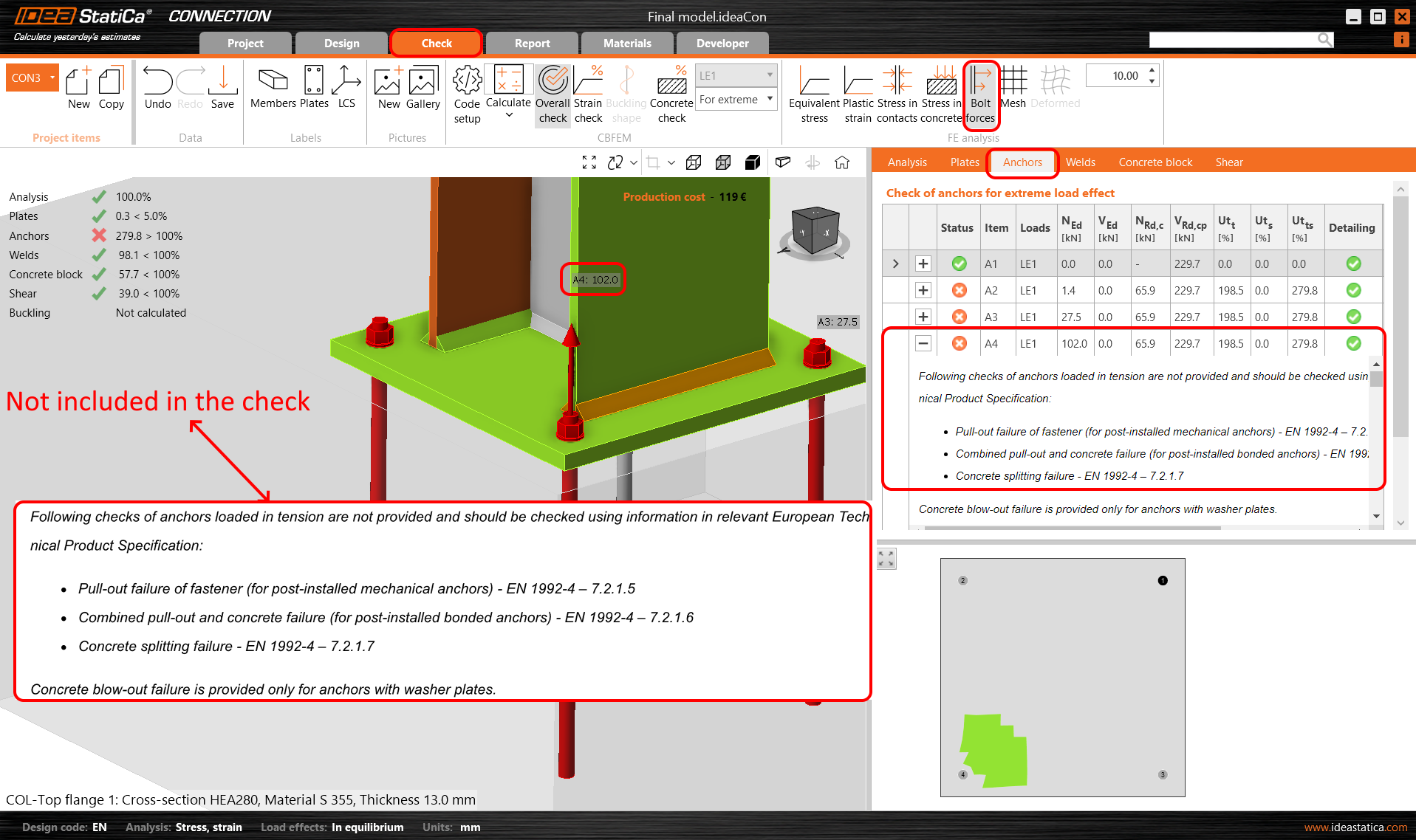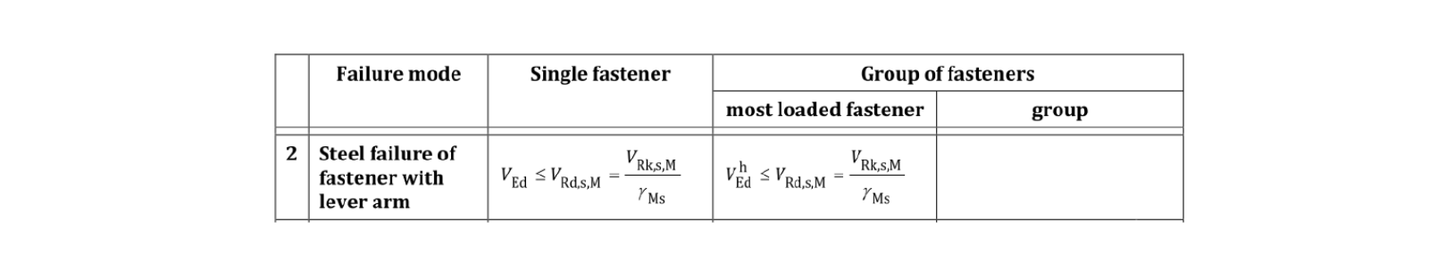 Esta comprobación de código está en Conexión sólo para determinados casos (véase la primera imagen de ese artículo). Una evaluación adicional es necesaria para los anclajes mecánicos post-instalados.