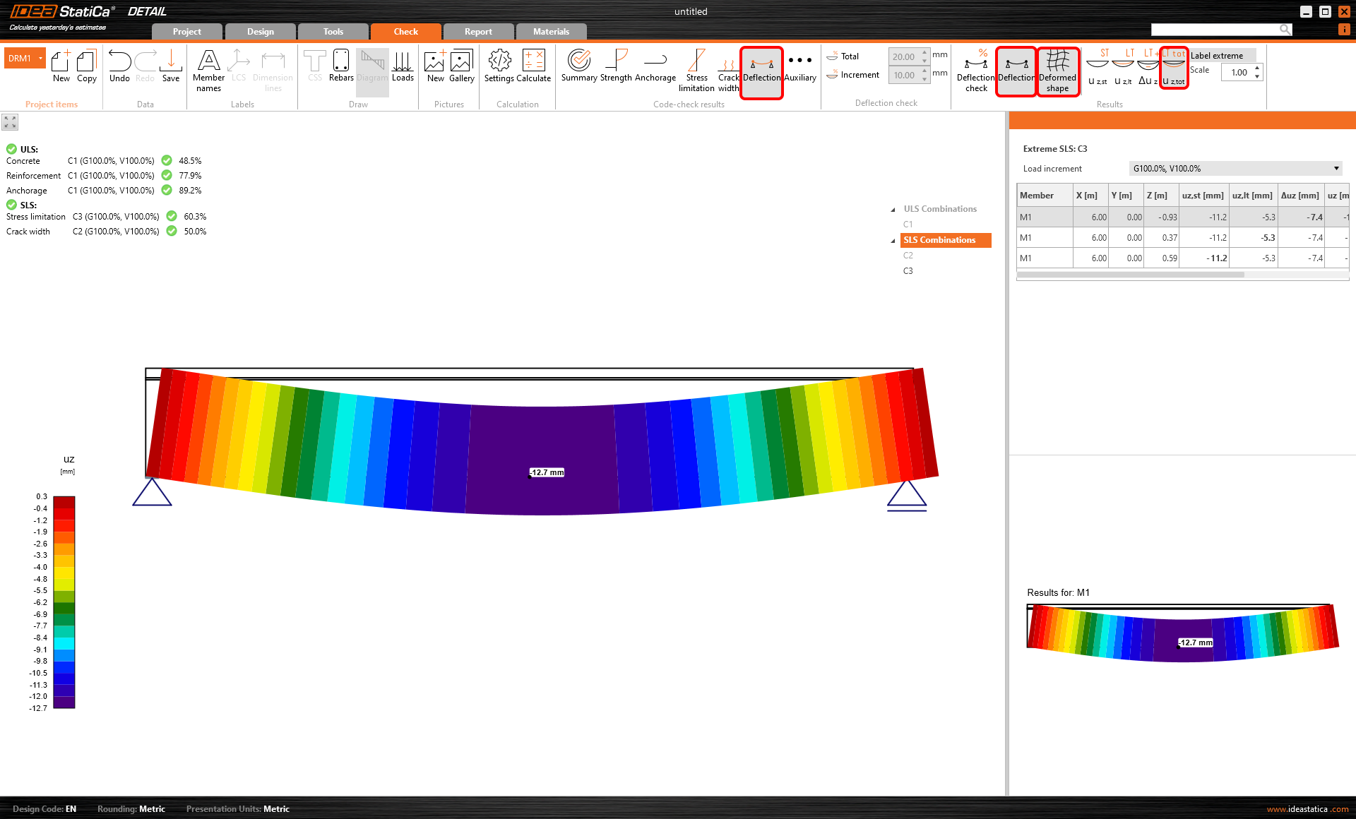 Δuz,lim, y Δuz,lim se pueden ajustar manualmente en la barra de comprobación de Desviación en la cinta superior.