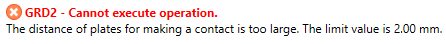 Gap = 2 mm (plates are parallel and aligned, but there is a gap between the surfaces) - application shows the error "The distance of plates for making a contact is too large. The limit value is 2.00 mm.".