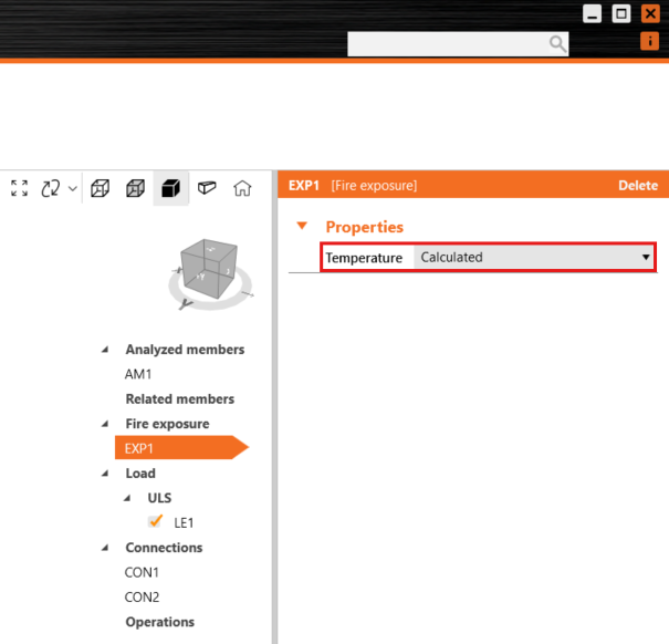 After that in Fire exposure, we can choose how temperature will be calculated either calculated according to EN 1993-1-2 – Cl. 4.2.5 or manually input a temperature for the whole model.