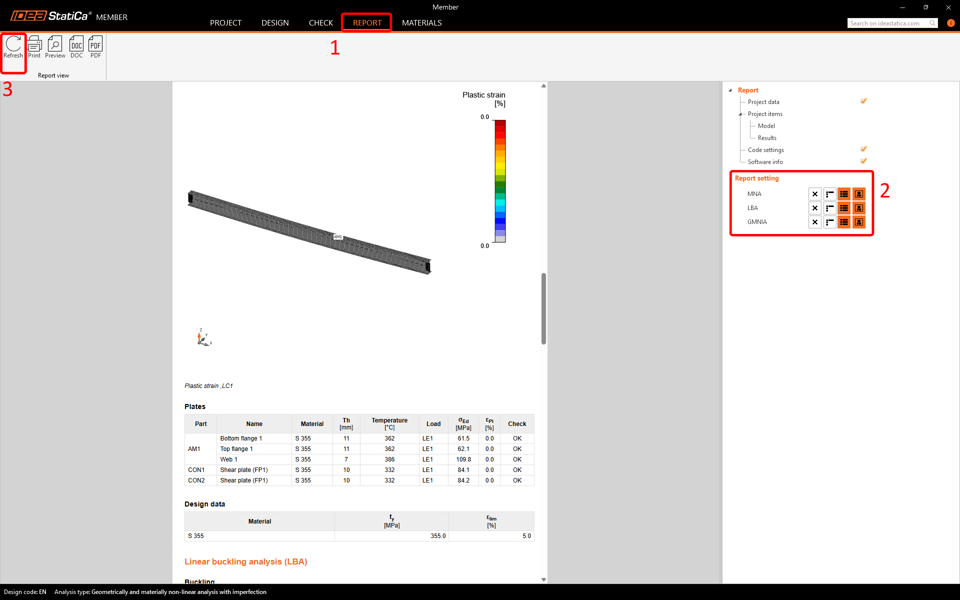 At last, go to the tab Report. IDEA StatiCa offers a fully customizable report to print out or save in an editable format.